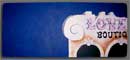 Stenciled acrylic paintings on wooden boards.